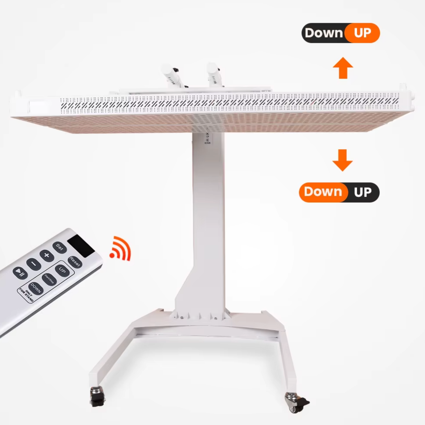 The MPS5 is our flagship heavy duty motorised stand, engineered for maximum flexibility and ease of use. Designed for both vertical and horizontal positioning, it can be placed over a bed or treatment table for comfortable, hands-free sessions, or used upright for standing treatments.